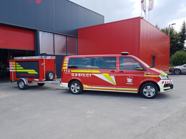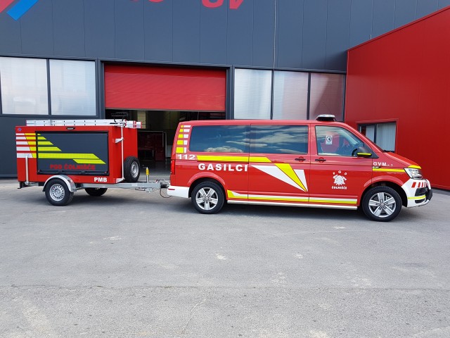 Gasilsko vozilo za prevoz moštva GVM-1 ter priklopnik s prenosno motorno brizgalno PBM