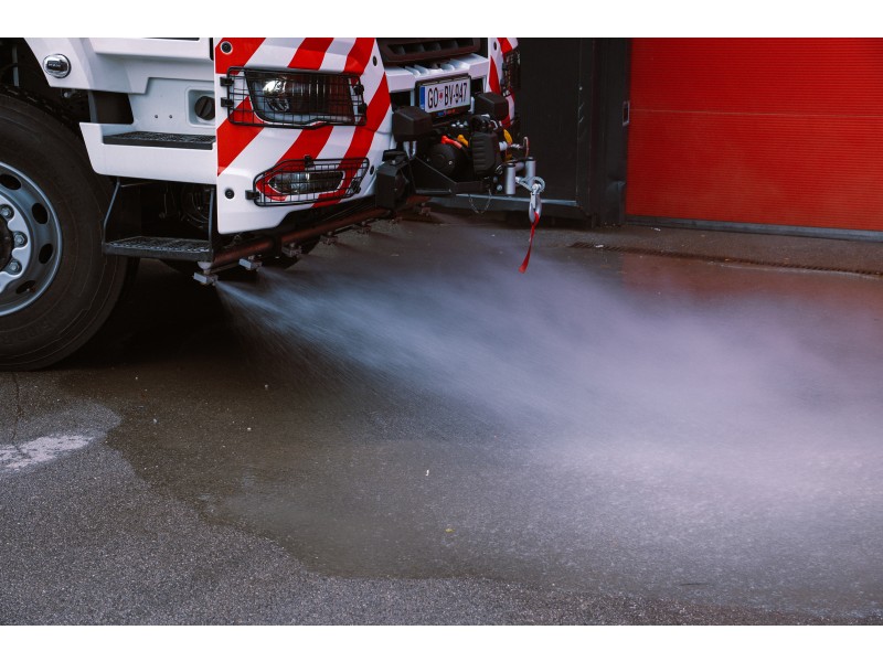 Naprava za pranje cestišča z upravljanjem iz kabine vozila